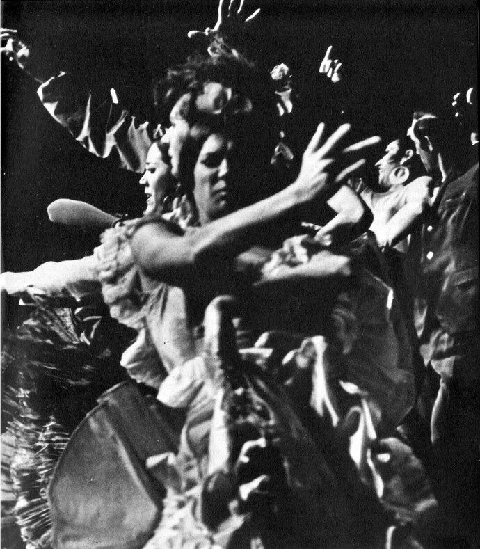 Bij de Flamenco roept dit flirten met de artistieke dood de intense spanning op die het publiek in een magische ban brengt.