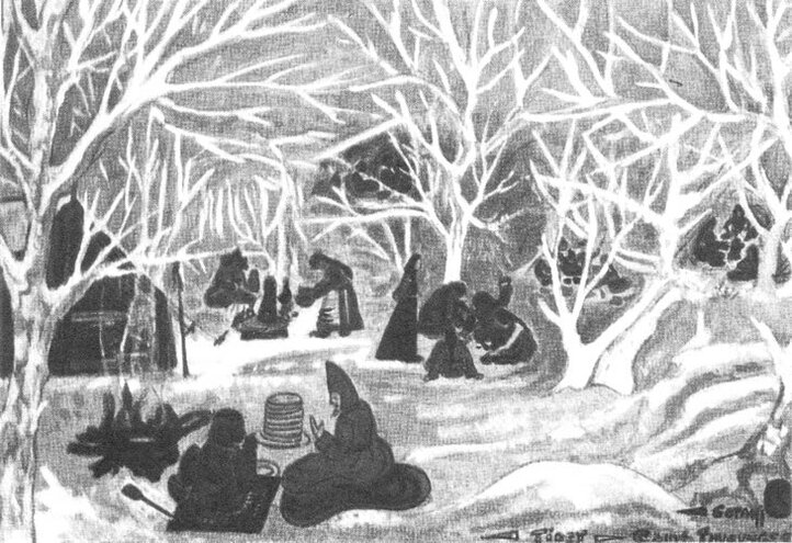 Het kamp in Thusungse tijdens een expeditie naar Tibet, geschilderd door Li Gotami